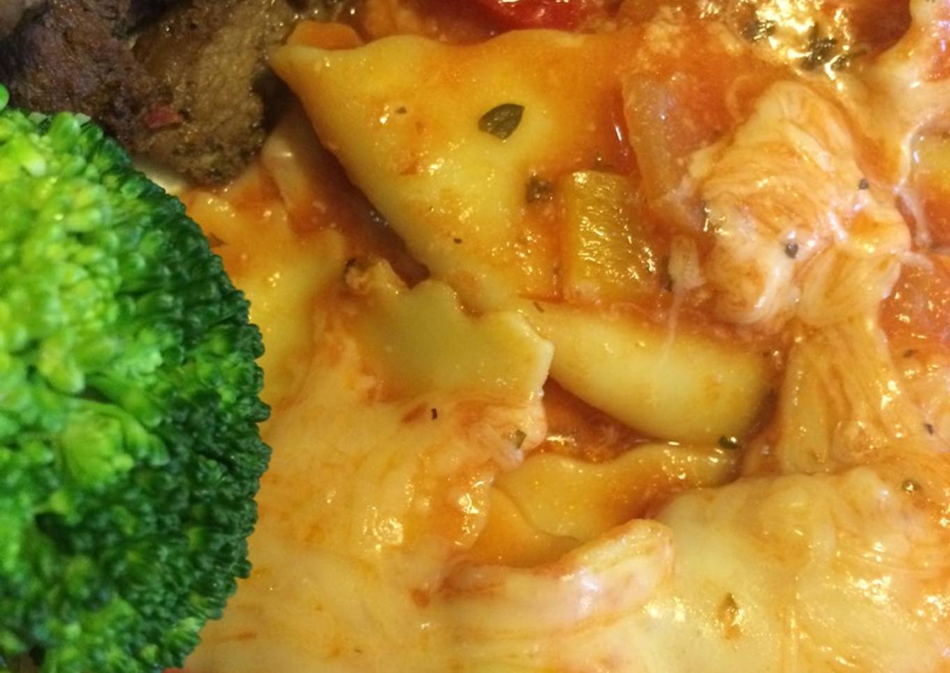 - El horno se pone a calentar a 375 grados F o 190 C se vierte la salsa en los raviolis y se cubre con el queso Mozzarela, se mete al horno sin tapar. Por 35-45 minutos.