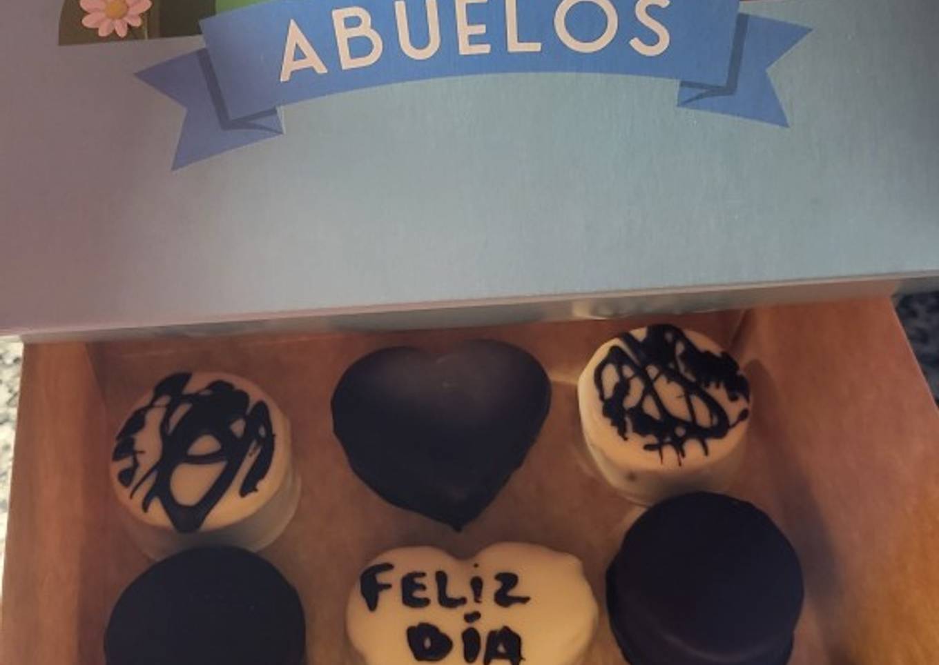 - Compré unas cajas que ya vienen decoradas con el motivo del día del abuelo, puse lo alfajores dentro! Y listo a regalarle a los abuelos😊