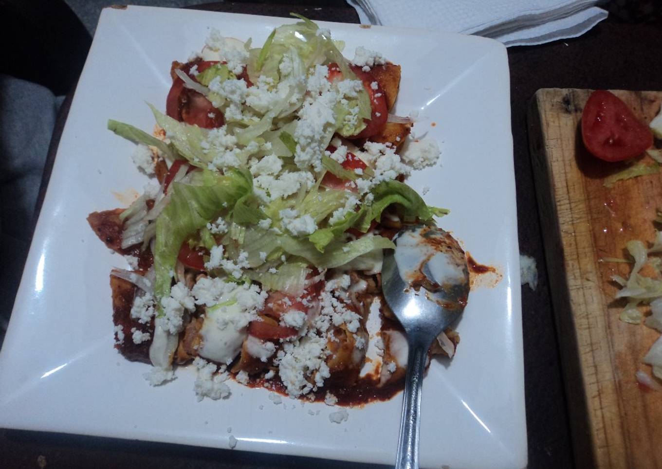 Enchiladas con salsa de manzana y rellenas de puré de papa con manzana las Correa