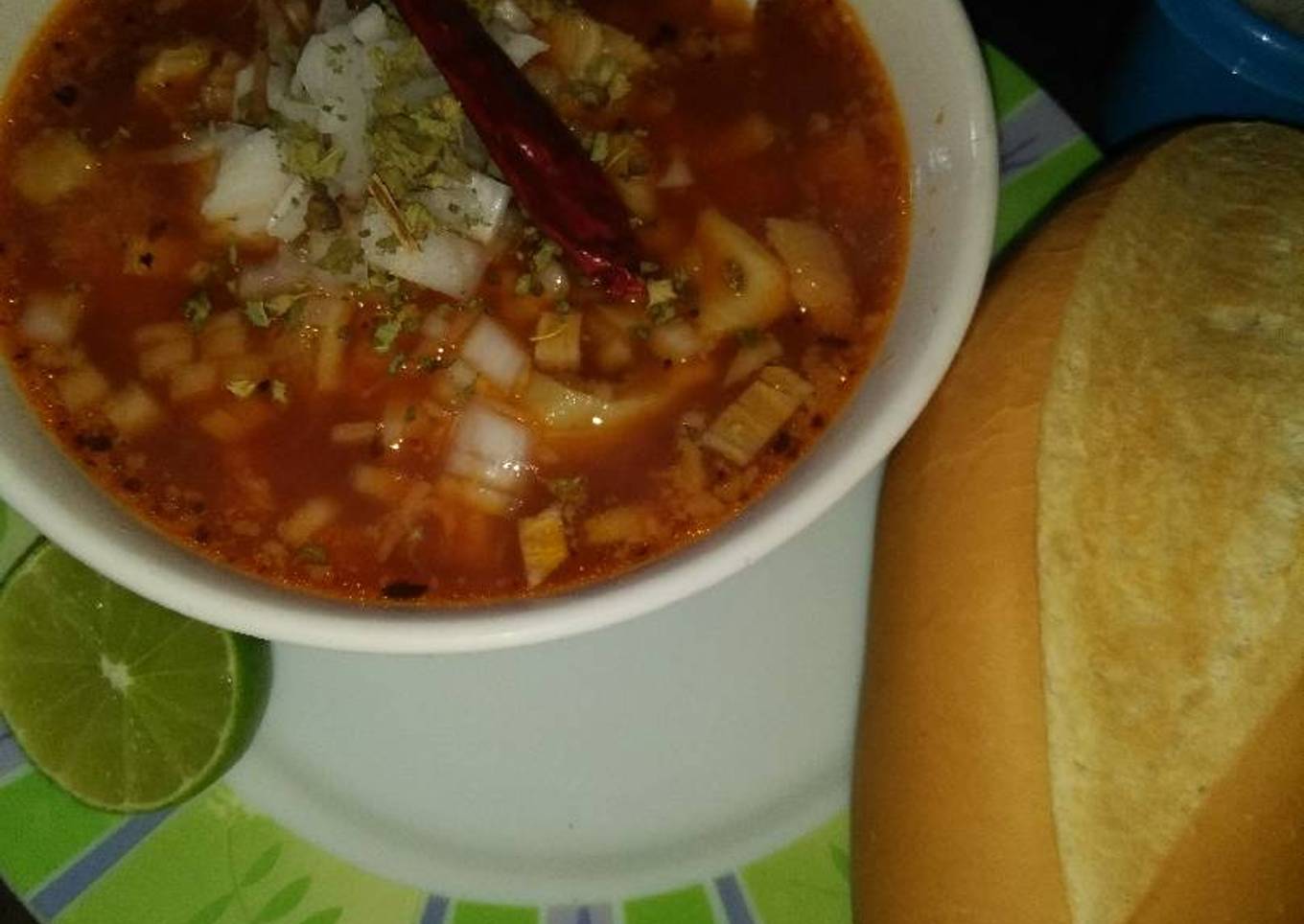 Esta es una de mis comidas favoritas de mi región la comarca lagunera en especial porque lleva el maíz pozolero y pata de res pero en este caso lo haré solo con la pancita... Y se acompaña con lo típico pan francés y el que le guste pues con tortillas de 🌽