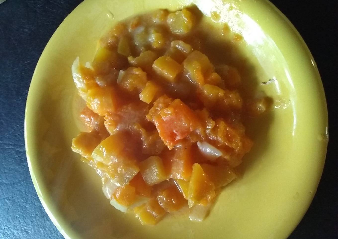 - Una vez tierna la cebolla se le agrega todo el resto hasta que se cueza. Si reduce mucho el líquido se le puede echar un poco de agua.