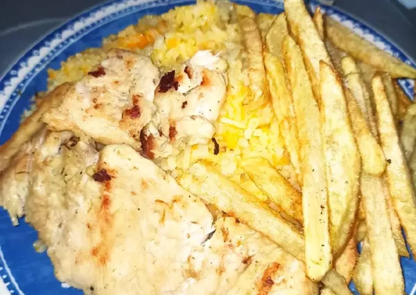 Pechuga de pollo asada con papas a la francesa (Mi comida favorita)