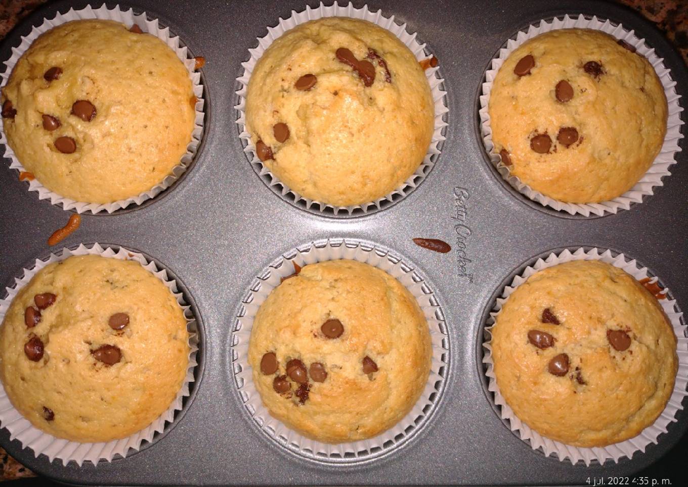 - Tip: pasa los chips por harina antes de añadirlos a la mezcla para que al hornear no se bajen al fondo del cupcake.