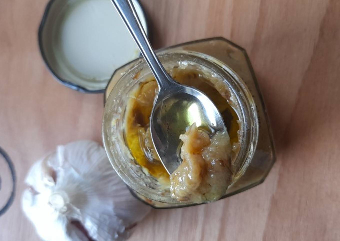 - Finalmente, disponer la pata en un frasco, cubrir con un poco de aceite de oliva y tapar bien. Guardar refrigerado y te servirá para muchas preparaciones ya que el ajo con su poder antibacterial no se echa a perder.