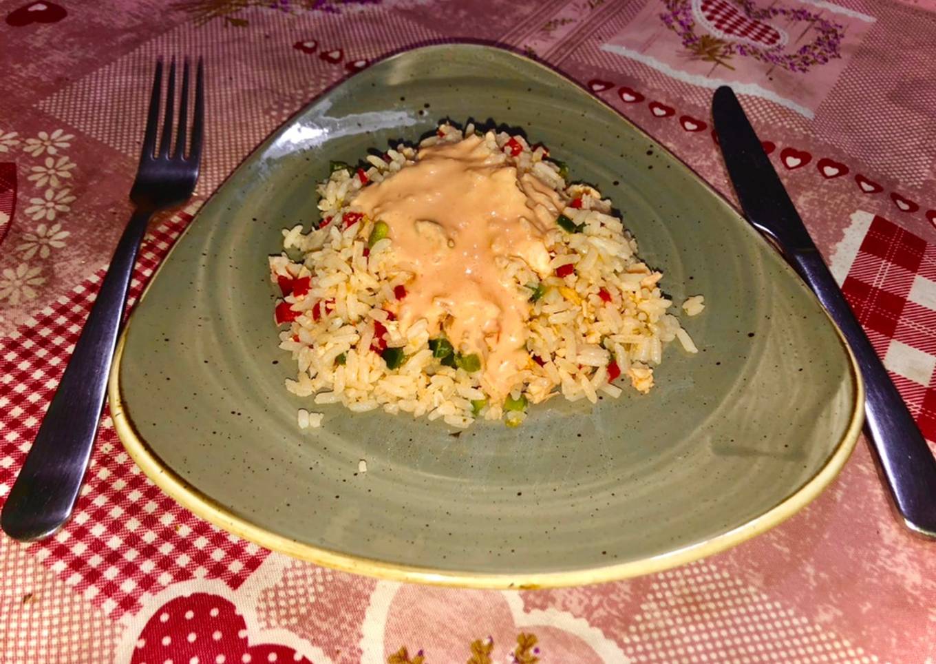 Arroz con salmón y pimientos