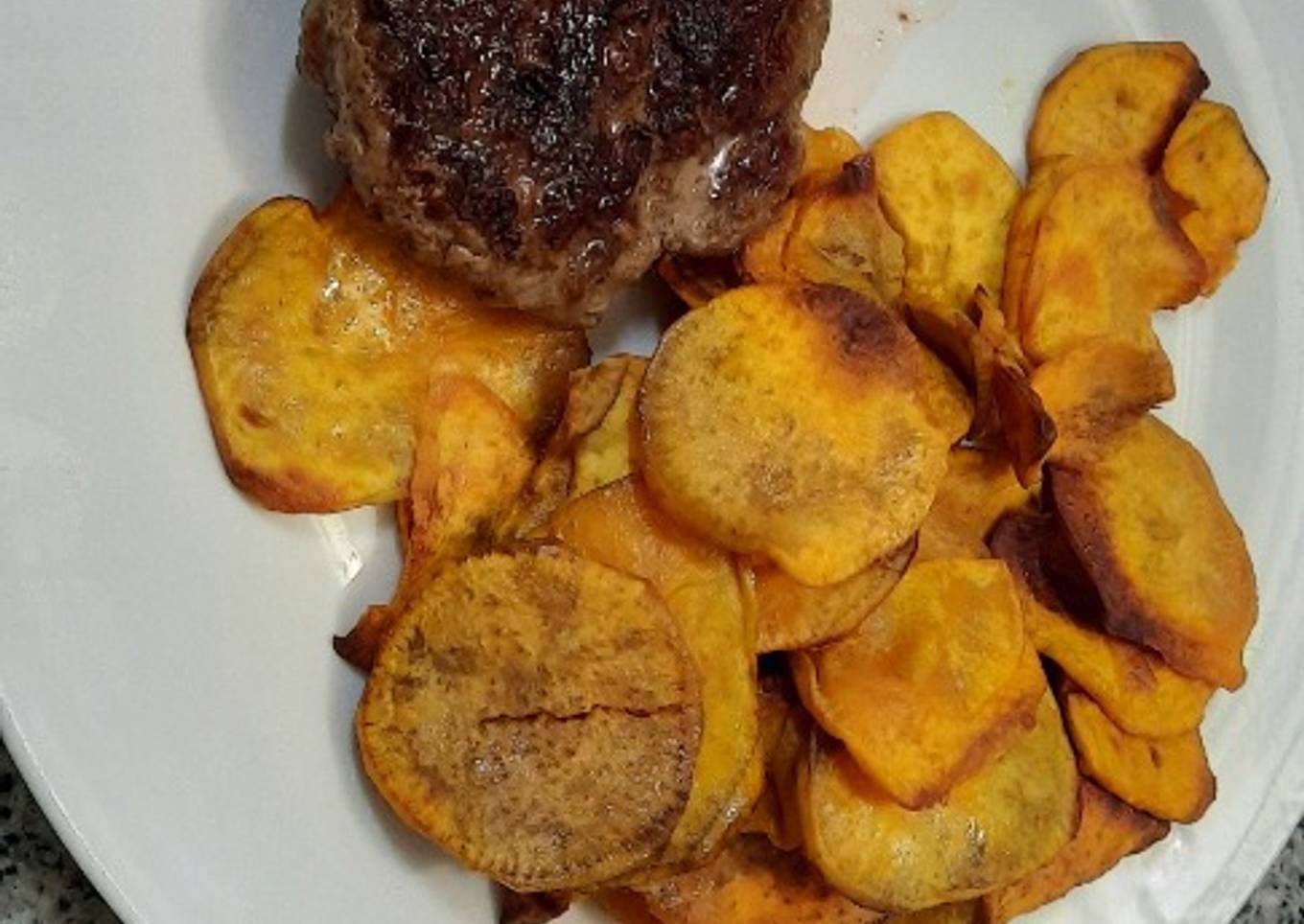 Una vuelta más saludable a las clásicas papas fritas 🍟 que todos hemos comido en nuestra niñez y que tanto les encantan! Se puede acompañar de lo que quieran (lo acompañé de hamburguesa casera) o como picoteo.