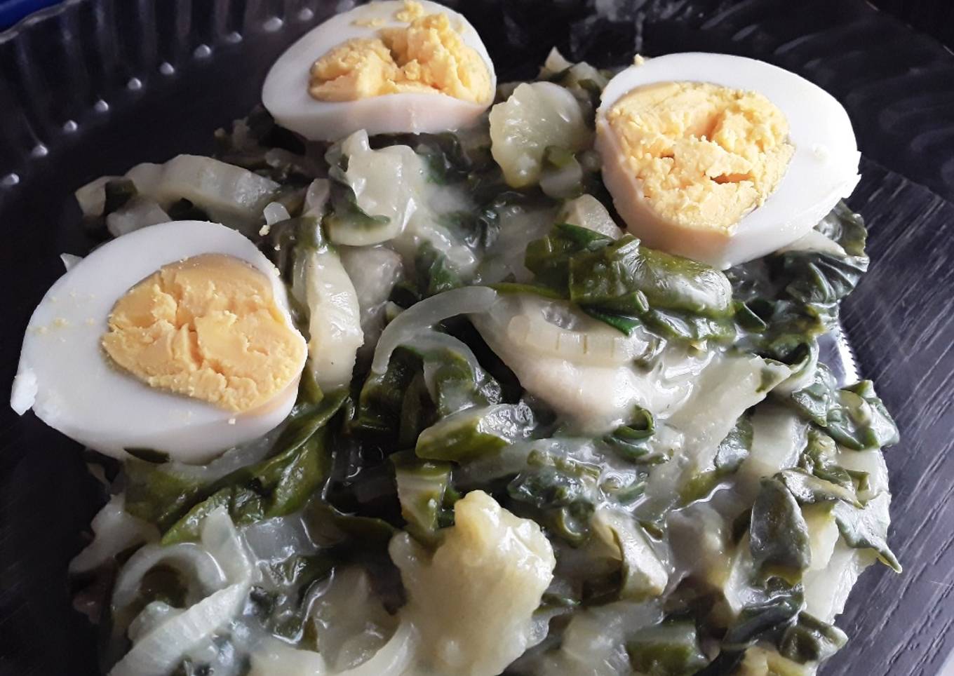 Instructions to make to make Acelgas con huevo y salsa cremosa... 🤔🍳🧀🍶🍽