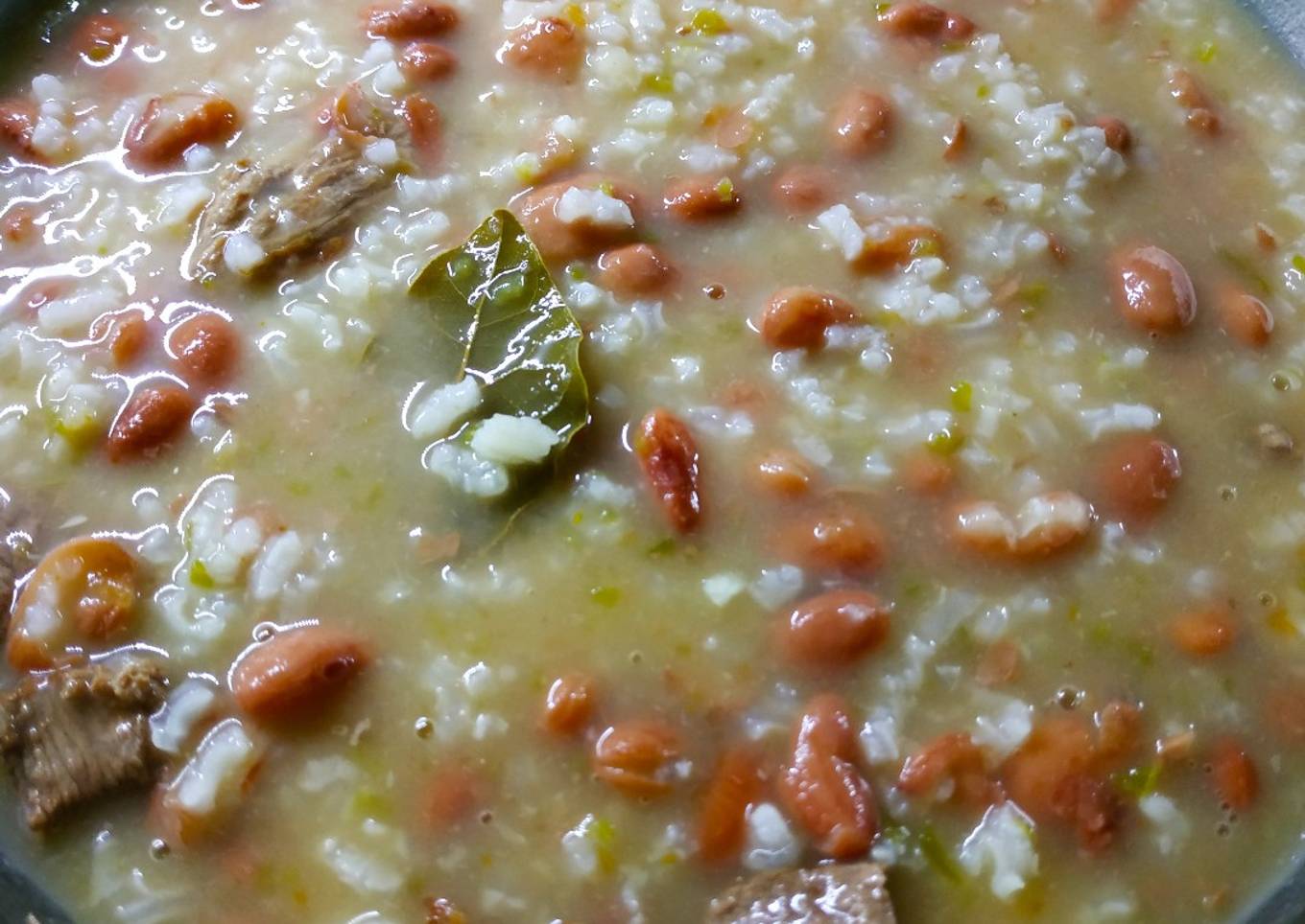 - Pasado este tiempo sacamos un par de cucharadas de judías y arroz y trituramos, lo añadimos a la olla para que la salsa coja consistencia.