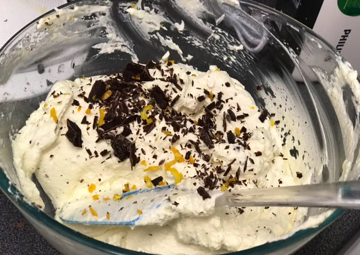 - Por último añade la ralladura de naranja y el chocolate rallado. Remueve y mete al congelador. Saca y remueve cada 30 minutos las 3 primeras horas y listo para disfrutar 🥳🥳🥳