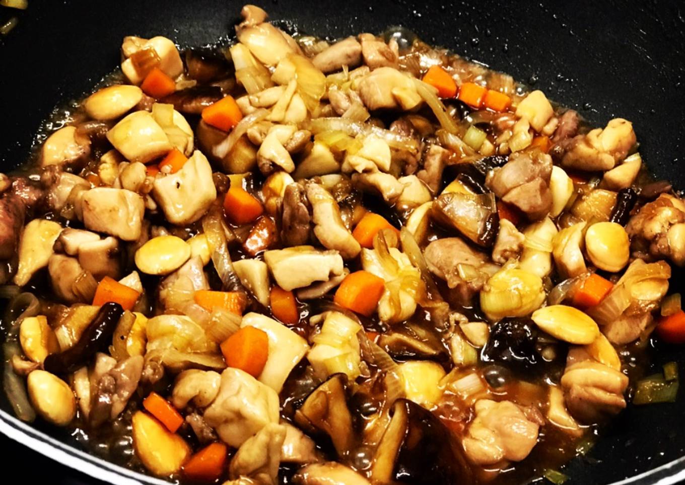 Instructions to make to make Pollo con almendras y seta shitake 🍜🍜🍜🥢🥢🥢
